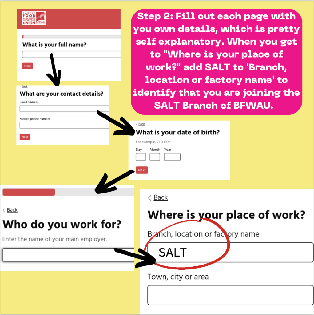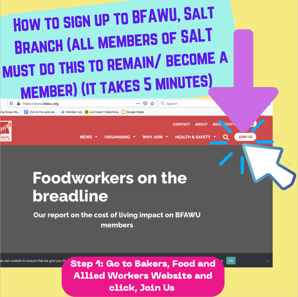 Our culture of organising begins with becoming a member. As a member, you will have the support and backing from SALT’s Organising Members, Elected Reps and the rest of the BFAWU membership to stand with your colleagues and push for better working conditions. This can be as simple as knowing your rights, having conversations with your colleagues and standing in solidarity with each other when issues arise. SALT / BFAWU offers training, tools and peer support to help build confidence in workplace organising.